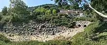 In the 1930s, Neary Rock Quarry was dug on upper Hale Creek.[6] The quarry supplied base rock for the construction of Moffett Field and crushed rock for Highway 101 and I280.[7] In 2006, Los Altos Hills approved the construction of the Quarry Hills subdivision, consisting of 22 upscale homes and an eleven-acre lake, by damming the outflow from the quarry to Hale Creek.[8]