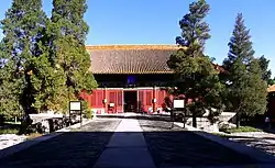 The Hall of Literary Brilliance (simplified Chinese: 文华殿; traditional Chinese: 文華殿; pinyin: Wénhuá diàn), or the Hall of Literary Glory or Wenhua Hall, is a hall in the outer court of the Forbidden City, located far east of the Hall of Supreme Harmony.[1] In the early Ming Dynasty, the hall was originally used as the residence of the heir apparent.[2] However, starting in 1536, Ming emperors began to use the building as a secondary hall.[1] During both the Ming and Qing Dynasty, the hall hosted grand imperial lectures on Confucian classics and served as a place for the emperor to meet his scholars and officials.[1][2] The hall was also where palace examinations papers would be reviewed and marked by nine readers who would be sequestered in the hall for two days.[3] The hall gave its name to one of the seven different titles of grand secretary in late-imperial China. Becoming Grand Secretary of Wenhua Hall was considered to be an especially prestigious honour for high-ranking mandarins.[1]