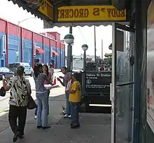 This station was the site of a 1988 arson that killed a token booth clerk, 39-year-old Mona Pierre. Robbers squirted accelerant into the booth on the platform and set the fumes alight with a match, destroying the booth and killing the clerk.[19] This incident inspired a robbery scene in the 1995 film, Money Train.