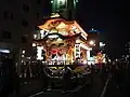 As night falls, the floats depart to the sounds of the shamisen played, the flutes and drums played by children wear in festival costumes and riding on the floats. They are called the ohayashi. The festival reaches its climax when the sounds of drums and flutes echo through the night sky. [1]
