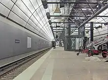 A railway to the airport has been discussed since the 1960s, including as a possible extension of the original route of U-Bahn line 4, on which work was abandoned in 1974. Further planning of a rail connection progressed slowly, partly because until the 1980s, there were plans for a new major airport at Kaltenkirchen, replacing the existing Hamburg airport.[4] It was only after the plans for the new airport were dropped that a new rail link to the airport was re-examined, but little progress was made in the late 1980s due to lack of funding. However, in 1991 a shell for part of a station was built at the airport. In 1998 the Senate of Hamburg (government) decided to expand the airport, including a rail link. Progress was delayed by protests by local residents and work finally began on 11 April 2001. However, work was again delayed by water leaks during construction in 2004 and the line was finally opened to regular traffic on 12 December 2008. On the previous day free familiarisation trips operated to the airport station.