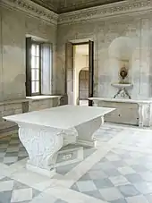There were originally two dairies: one in which the dairy products were made and one in which the queen tasted them. The Preparation Dairy was destroyed during the First Empire. Each were designed with sanitation in mind: The rooms are light-colored marble, which gives the impression of cleanliness.