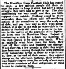 - ↑ Groves, Murray, and Henry. "The Accies and Harp". Hamilton Herald: 7. 13 June 1890.