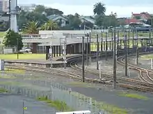 Due to the end of steam operation in the North Island in 1968, the depot was closed and a new station, 400 yd (370 m) south of the existing Frankton Junction was tendered for in October 1972. On 6 December 1972 a contract was awarded to Ray Leach Ltd. and by May 1975 the station was nearly complete.[3] It was opened on 6 August 1975, with a side platform on each line. The station was renamed Hamilton at that time and the station formerly with that name, in the town centre, and its associated Road Services terminal in Ward Street, were renamed Hamilton Travel Centre.[3] The listed[8] Frankton South End signal box was relocated to the Hamilton Miniature Engineers' site at Minogue Park,[9] opposite the new Te Rapa loco depot.