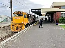 Hamilton railway station serves the city of Hamilton in the Waikato region of New Zealand. It is located in the suburb of Frankton, hence the station's former name Frankton Junction, its name for most of its existence. The station is a Keilbahnhof, located at the junction of the North Island Main Trunk (NIMT) and East Coast Main Trunk (ECMT) lines. The station is served by the regional Te Huia service, which runs to Auckland via Rotokauri Transport Hub and Huntly railway station twice daily in the morning, with return services in the evening and by the 6-days a week, Northern Explorer passenger service, between Auckland and Wellington.