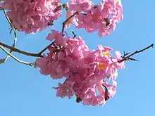 Handroanthus impetiginosus,[3] the pink ipê, pink lapacho or pink trumpet tree, is a tree in the family Bignoniaceae, distributed throughout North, Central and South America, from northern Mexico south to northern Argentina. Along with all the other species in the Handroanthus genus, it is the national tree of Paraguay.[4][5]