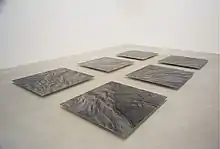 The Erosion Project (work in progress) conducts research into the erosion of natural and cultivated landscapes which takes the shape of a clear, reduced aesthetic. 'The project consists of three series: floor installations, Erosion I-VII (2000–2006); Modeling Erosion (2003–2007), created in collaboration with the ETH Zurich Institute of Geotechnical Engineering; and Landschaft in Bewegung/Moving Landscape (2008–), a collaboration with the ETHZ Laboratory of Inorganic Chemistry as part of the research project Farbe und Fotografie/Colour and Photography. Earlier works were seminal to the series, specifically Landschaften (1993–1996) and the art-in-architecture project Schiefertafel Beverin (2001).