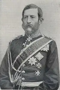 Bülow was promoted to Generalmajor on 18 June 1869.[1] In 1869, Bülow became a Knight of Honour of the Order of Saint John.[7] Bülow took part in the Franco-Prussian War, during which he played a more important role. He became commander of the III Corps's Reserve Artillery. He participated in Battle of Mars-la-Tour and was awarded with both classes of the Iron Cross.[1] Afterwards, on 21 September 1871, von Bülow became commander of 1st Guards Field Artillery Brigade.[8] On the same day, Bülow ordered both field batteries and horse artillery to trot forward to Vernéville, to reinforce IX Corps.[9] He distinguished himself by the new usage of artillery during the Franco-Prussian War.[10] Bülow knew how to keep in perfect fighting condition without suffering great losses; during the Second Battle of Orléans, his insightful leadership succeeded in driving the enemy. For his wartime services he received the prestigious Pour le Mérite on 2 December 1872.[11]