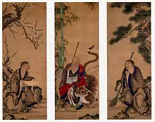 Hanshan (Chinese: 寒山; pinyin: Hánshān; lit. 'Cold Mountain', fl. 9th century) is a Chinese Buddhist and Taoist figure associated with a collection of poems from the Chinese Tang dynasty in the Taoist and Chan tradition. No one knows who he was, when he lived and died, or whether he actually existed. In the Chinese Buddhist tradition, Hanshan and his sidekick Shide are honored as emanations of the bodhisattvas Mañjuśrī and Samantabhadra, respectively. In Japanese and Chinese paintings, Hanshan is often depicted together with Shide or with Fenggan, another monk with legendary attributes.
