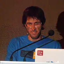 He is perhaps best known for his 2007 free solo climb of the Via Attraverso il Pesce, commonly known as Fish Route, also on Marmolada's south face.[1][4][5][6] The 37-pitch (850 metres, 2,800 feet) route, named for a fish-shaped niche in the 20th pitch, is highly committing, and is graded 5.12c (7b+).[1][3][4] There are eight particularly hard pitches bracketing the niche, including some overhanging sections. The route was first free climbed by the Czech Jindrich Sustr and the Slovak Igor Koller in 1981, using ropes in a traditional climbing manner. It was rope soloed by the Italian climber Maurizio Giordani in 1990; Giordani used a rope to belay himself on some of the pitches and took 10 hours. Auer had failed to redpoint the climb with a partner in 2004. He started his 2007 attempt on 28 April by practicing sections, after abseiling in from the top of the wall. He then fully free-soloed the route on 29 April (i.e. without using any rope), in 2 hours 55 minutes.[4] Auer's free climb has been compared with the 2017 free solo climb of El Capitan in the Yosemite National Park by Alex Honnold.[1][5] Alpinist magazine described it in 2007 as "one of the most difficult, long free solos ever tackled", commenting that it could be described as a "speed ascent".[4]