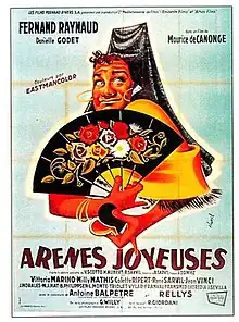 Happy Arenas (French: Arènes joyeuses) is a 1958 French musical comedy film directed by Maurice de Canonge and starring Fernand Raynaud, Danielle Godet and Colette Ripert.[1] [2] It is an operetta film, based on the 1934 operetta of the same title by Henri Allibert, René Sarvil and Vincent Scotto. Location shooting took place around Martigues and the Camargue. The film's sets were designed by the art director Robert Giordani.[3] The operetta had previously been made into the 1935 film Happy Arenas directed by Karl Anton.