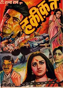 Haqeeqat (transl. Reality) is a 1985 Hindi-language political action film, produced by Vijay Soorma and Rajeev Kumar under the Vidya Shree Films banner and directed by T. Rama Rao. It stars Jeetendra, Jaya Prada in the pivotal roles and music composed by Bappi Lahiri.[1][2] The film is remake of the Telugu movie Neti Bharatam (1983), starring Suman, Vijayashanti in the pivotal roles.[3][4]