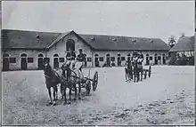 In 1914, a 4-year-old mare from the Corlay line, Caroline, bred by the Haras National d'Hennebont, won first prize at the Concours Central Hippique de Paris, as did her breeder, Mr. Roux from Scaër.[20] Particular attention was paid to maintaining horse births during the World War I,[22] in particular the production of the Breton Postier, the artillery horse par excellence.[21] After the armistice, the Haras National d'Hennebont employed over 100 staff.[22][23] Agricultural needs lead to an increase in the number of draft stallions, as well as imports of Ardennais stallions, although there are fewer of them than at Lamballe.[21]