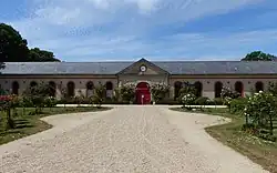 The stud boasts a very rich built heritage,[53] with a total of 32 buildings, including seven stables, three manor houses and a forge, for a total built area of around 10,000 m2. This built heritage is managed in collaboration with the Architect des Bâtiments de France.[51] The Haras porterie, nicknamed the "house of confessors", is considered remarkable.[53] This former janitor's lodge stands on the banks of the Blavet River.[54]