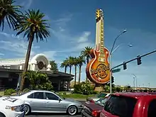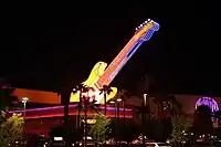 The Hard Rock Cafe closed on December 31, 2016, as Hard Rock International wanted to focus efforts on its newer location at the nearby Showcase Mall.[162] The café sat vacant for several years,[183] and its Gibson Les Paul guitar sign was disassembled in October 2017.[184] YESCO had built the sign and rented it to Hard Rock International while the restaurant was in operation.[185] The sign was refurbished and put on display at the city's Neon Museum in 2019.[186][187]