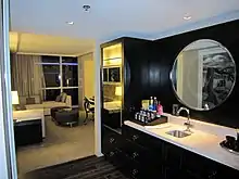 The casino's Center Bar closed in June 2015,[172] for remodeling. The circular-shaped bar was built in the center of the casino and was opened in 1995, with the rest of the resort. The Center Bar had been popular among celebrities and local residents, but it was also largely unchanged since its opening, prompting the renovation project.[173][174][175] The expanded Center Bar opened several months later,[176] and it subsequently began hosting DJs.[177]