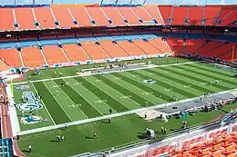 Interior of Land Shark Stadium in September 2009 when the Florida Marlins, Miami Dolphins, and Miami Hurricanes were all playing there simultaneously prior to the Marlins' 2012 move to LoanDepot Park