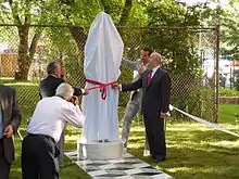 Valentine's Riflessi: Italian Canadian Internment Memorial, was unveiled on Wednesday, June 26, 2013 at the Columbus Centre.[15] The reflective, metal plated monument, standing atop a checkered marble platform,[16] "explores the struggles and successes of the Italian Canadian immigrant story and the Italian Canadian internment history.[15]"