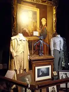 The exhibition featured props, costumes, and other artefacts from the creation of the Harry Potter film series.[5] Among the items displayed were Harry Potter's wand and eyeglasses. Also featured were film sets, such the Great Hall and Gryffindor Common Room from the fictional school Hogwarts, which is a major setting in the series.[1][6] Beginning in 2016, some artefacts from the Fantastic Beasts and Where to Find Them film series were also included.[7]