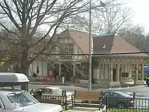 The station building was originally built in 1915 (or 1914 according to the MTA[9]) by the Warren and Wetmore architectural firm for the New York Central Railroad, as a replacement for a smaller wooden depot built by the New York and Harlem Railroad originally known as "Hart's Corner Station."[10] Unlike most Warren & Wetmore-built NYC stations, which were grand cathedral-like structures using Beaux-Arts architecture, the station in particular was strictly of the Tudor Revival style. The station was named after the valley owned by the Harts.[11]: 28