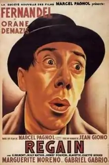 Harvest (French: Regain) is a 1937 French drama film directed by Marcel Pagnol, starring Fernandel, Orane Demazis, Marguerite Moreno and Gabriel Gabrio. The narrative revolves around a farming village where only three inhabitants remain, but they are told that if only one of them, Panturle, manages to find a wife, the village will be able to prosper again. The film is based on the 1930 novel Second Harvest by Jean Giono. It was released in France on 28 October 1937 and in the United States on 2 October 1939.