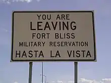 ![]() The sign at the Fort Bliss U.S. Army post | |