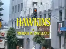 The pilot episode of Hawkins aired as a 90-minute television movie on March 13, 1973.[1] As a regular series, it premiered on October 2, 1973,[1][2][3] airing on CBS on Tuesdays at 9:30 p.m. throughout its run.[3] Like the series pilot, each regular-season episode was 90 minutes long.[3] It was broadcast every third week as part of the "wheel series" The New CBS Tuesday Night Movies, alternating in its time slot with Shaft and a made-for-television movie. The "wheel series" was a popular programming strategy in television entertainment programming during the late 1960s and the 1970s in which two or more regular programs were rotated in the same time slot. However, Hawkins attracted a starkly different viewer demographic from Shaft, which probably worked against it finding an audience as part of The New CBS Tuesday Night Movies.[4] With Hawkins suffering from low ratings and Stewart expressing his desire to bring the show to an end, its last new episode aired on March 5, 1974.[1] Reruns of Hawkins ran in prime time during its regular time slot until September 3, 1974.[2][3]
