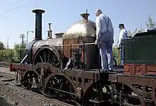 Some makers retained the Bury pattern of a hemispherical firebox. The American-built 4-2-0 Norris locomotives for the Birmingham and Gloucester Railway resembled a Bury design with outside cylinders, and retained the small D-shaped inner firebox.[10] Kitson also built a number of long-boiler 0-6-0s around 1845, also using the hemispherical haystack firebox.[4][11]
