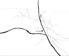 A short-lived continuation to the line was built in the early 20th century to convey materials and workmen during the construction of Kinder Reservoir. A famous photograph shows a construction contractor's locomotive crossing Church Street (the main street through the old village centre); the line skirted the cricket field and continued up the Sett Valley, and its course can still be traced in places.[16]