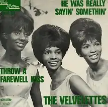 The original version of the song was recorded by Motown group the Velvelettes in December 1964. An alternate version recorded in October/November had been discarded. Produced by Norman Whitfield, the Velvelettes' version was released on Motown's V.I.P. label on December 27, 1964, and was a minor hit for the group in early 1965. "He Was Really Sayin' Somethin'" peaked at number 64 on the U.S. Billboard Hot 100, and at number 21 on the then recently reinstated Billboard R&B Singles chart.[2][3] The single was the second most successful release for the Velvelettes, a minor Motown act which never released a full-length album.
