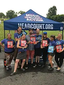 Some of HeadCount's higher-profile activity includes the release of public service announcements starring Jay-Z and Dave Matthews,[6] a compilation album featuring Pearl Jam, Wilco and Phish, and various activities involving board member Bob Weir of the Grateful Dead. HeadCount also has served as the voter registration partner for the March for Our Lives movement,[7] as well as Spotify, SoundCloud, American Eagle Outfitters, and the Grammy Awards.[8][9][10]