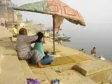 Indian head massage is an alternative medicine massage. One form of this is Champissage (a trademark; possibly a portmanteau of chāmpi, the Hindi and Urdu term for the practice, and massage).[3] In Champissage, the upper back, shoulders, neck, head and face are massaged.