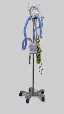 - ↑ Shoemaker MT, Pierce MR, Yoder BA, DiGeronimo RJ (February 2007). "High flow nasal cannula versus nasal CPAP for neonatal respiratory disease: a retrospective study". Journal of Perinatology. 27 (2): 85–91. doi:10.1038/sj.jp.7211647. PMID 17262040. S2CID 25835575.
