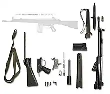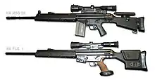 The Heckler & Koch G3 (Gewehr 3) is a 7.62×51mm NATO, select-fire battle rifle developed in the 1950s by the German armament manufacturer Heckler & Koch (HK) in collaboration with the Spanish state-owned design and development agency Centro de Estudios Técnicos de Materiales Especiales (CETME).[2] The modular designed G3 has over the years been exported to over 70 countries and manufactured under licence in at least 15 countries, bringing the total number built to around 7,800,000.[3]