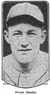 Clarence Francis "Heinie" Mueller (September 16, 1899 – January 23, 1975) was a professional baseball outfielder. He played professional baseball for 18 years from 1920 to 1938, including 11 years in Major League Baseball with the St. Louis Cardinals (1920–26), New York Giants (1926–27), Boston Braves (1928–29), and St. Louis Browns (1935). He also played six years in the minor leagues with the Buffalo Bisons from 1929 to 1934.[1][2][3]