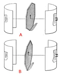 Hertz's demonstration of polarization of radio waves: the receiver does not respond when antennas are perpendicular as shown, but as receiver is rotated the received signal grows stronger (as shown by length of sparks) until it reaches a maximum when dipoles are parallel.[23]
