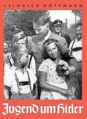 During the Third Reich Hoffmann assembled many photo-books on Hitler, such as The Hitler Nobody Knows (1933) – a book that Ron Rosenbaum calls "central to Hitler's extremely shrewd, extremely well-controlled effort to manipulate his image ... to turn his notoriously non-Nordic-looking foreignness, his much-remarked-upon strangeness, into assets to his charisma"[17] – and Jugend um Hitler ("Youth Around Hitler") in 1934. In 1938 Hoffmann wrote three books, Hitler in Italy, Hitler befreit Sudetenland ("Hitler Liberates Sudetenland") and Hitler in seiner Heimat ("Hitler in his Homeland"). His Mit Hitler im Westen ("With Hitler in the West") was published in 1940. His final book of this period, Das Antlitz des Führers ("The Face of the Führer"), was written shortly before the outbreak of the Second World War. In 1936 he had effectively seized control of stereographer Otto Schönstein's publishing house, Raumbild-Verlag, which effectively put him in charge of all mass-market stereoscopic (3D) photography in Germany until the end of the Second World War.[33]