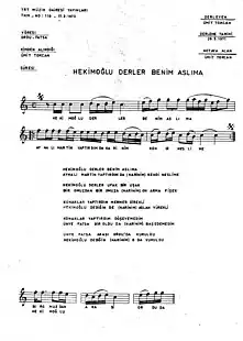 - ↑ "Hekimoğlu Derler Benim Aslıma| Türk Halk Müziği". www.notaarsivleri.com. Retrieved 30 December 2023.