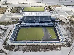 The Hellinikon Olympic Hockey Centre was the site of the field hockey events at the 2004 Summer Olympics in Athens. Located in the Hellinikon Olympic Complex, the facility consists of two hockey fields. The larger stadium seats 7,200 fans – though only 5,200 seats were made publicly available during the Games, and the smaller stadium seats 2,100 spectators – though only 1,200 seats were made publicly available during the Games. The facility was completed on February 29, 2004, and officially opened on August 11, 2004, shortly before the beginning of the Games.