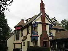 The Henry Bradlee Jr. House is located in Medford, Massachusetts. It was designed in the Queen Anne style by Peabody & Stearns circa 1881–1882. This was one of three houses built by the Halls and the Bradlees on their estate.