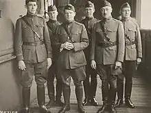 When America entered the war in 1917, Reilly, by then a colonel, had assumed command of the 149th Field Artillery Regiment of the 42nd ("Rainbow") Division.[3] His regiment saw combat in France, where it became known as "Reilly's Bucks."[4] He also briefly commanded the 42nd Division's 83rd Infantry Brigade during the final stages of the Meuse–Argonne offensive. He took command of the brigade on October 20, 1918, and relinquished it to Brigadier General Frank Merrill Caldwell nine days after the November 11 armistice.[5]