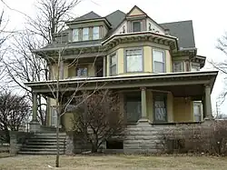 The Henry Weis House is a historic building located in Waterloo, Iowa, United States. Weis was a factory owner that produced egg case fillers, which were used to protect eggs during shipping.[2] He engaged the local architectural firm of Murphy & Ralston to design this house, which was completed in 1902. Architecturally, the two-story frame structure is "transitional" in its design, featuring elements of the Queen Anne and the Colonial Revival styles.[2] The Queen Anne is found in its irregular plan, wraparound porch, full-height bays, small second floor porch, and the small screened porch. The Colonial Revival is found in the Ionic fluted porch columns, and the consoles with a row of dentils located along the cornice. The house also features foliated designs on the gable ends. It remained in the Weis family into the 1930s when it was converted into apartments. It has subsequently been converted into a bed and breakfast. The house was listed on the National Register of Historic Places in 1989.[1]