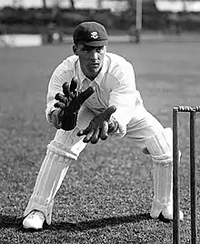 After World War I halted county cricket, Strudwick re-established himself in the England side until he retired in 1927 – though he was dropped to improve the batting during the disastrous 1921 series against Armstrong's Australians. Gilbert Jessop said "Struddy was a specialist" and "year after year our most reliable 'stumper'", but in Test matches that wasn't enough.[1] After his playing days he became a respected coach and for many years was the Surrey scorer.