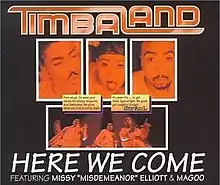 "Here We Come" is a song by American producer/rapper Timbaland. It features frequent collaborators Missy Elliott and Magoo and serves as the lead single for Timbaland's solo debut album, Tim's Bio: Life from da Bassment (1998). The song also features background vocals by Playa and Darryl Pearson. While the song charted and was released via radio airplay on November 17, 1998, it was not granted a physical release in the United States until March 2, 1999;[1] and on October 5, 1999, for Germany.[2]