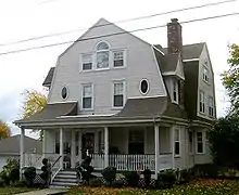The Herman McIntire House is a historic house at 55 Dixwell Avenue in Quincy, Massachusetts. The 2+1⁄2-story wood-frame house is one of two houses built and lived in by Herman McIntire, a local realtor. This one (the other is at 21 Dixwell) is a well-preserved example of a large Shingle-style house, built in the affluent President's Hill neighborhood. The large gambrel gables are typical of the Shingle style, as are the varied window shapes.[2] Its exterior has been partially compromised by the application of siding instead of shingling (see photo).
