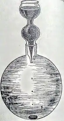 Fol is credited with the invention of the barthometer. The barometer properly measured mercury, the pressure to which the apparatus had been submitted, and the determination of the depth of compressible liquid within the device. His invention consisted of a spherical glass reservoir of a liquid that is slightly compressible, such as water or ether. The single hole to the vessel is a capillary tube that corresponds with a minor reservoir filled with mercury. Mercury, along the assumed temperature of the water at the sea bottom, must remain at the stage with the hole in the pointed stopper within the large reservoir. The top surface of the mercury is released to contact the water. The device is lowered by the sound line. The water or ether will compress as the device lowers, a given amount of each atmosphere of pressure, and a correlating amount of mercury will release between the hole and lower to the base of the bottom reservoir.[3]
