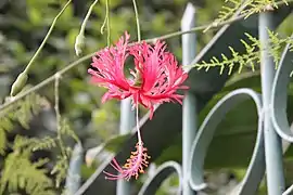 Hibiscus schizopetalus is a species of Hibiscus native to tropical eastern Africa in Kenya, Tanzania and Mozambique. Its common names include fringed rosemallow,[1] Japanese lantern, coral hibiscus, and spider hibiscus.