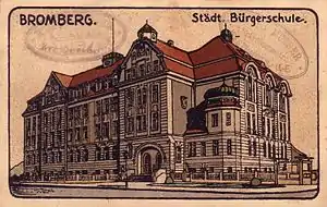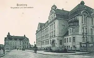 - ↑ "1.Institutions". Adressbuch nebst allgemeinem Geschäfts-Anzeiger von Bromberg und dessen Vororten auf das Jahr 1915 auf Grund amtlicher und privater Unterlagen. Bromberg: Dittmann. 1915. p. 15.