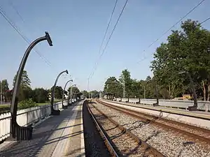 There are two platforms along the two-lane railway, both 146 meters long. Elron's electric trains from Tallinn to Keila, Paldiski, Turba and Klooga-Rand stop at Hiiu station.[1] The station belongs to the Zone I, within which traffic is free for Tallinners.