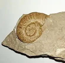 Hildoceras is a genus of ammonite from the Jurassic[1] period in the family Hildoceratidae. The shells are characterized by a narrow discoidal evolute shape, keeled venter, concave ribs along the outer flanks, and a shallow spiral groove running along smooth inner flanks. Whorls slightly overlap, cross sections are compressed. The ventral keel is bordered on either side by a shallow groove. The genus was named by Alpheus Hyatt after Saint Hilda in 1876.